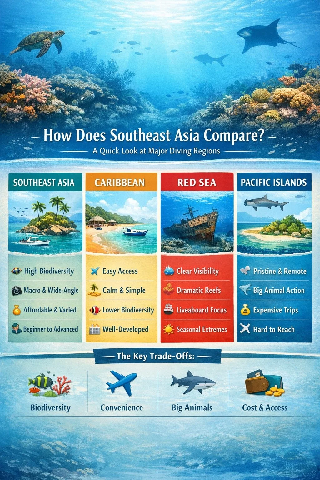 🌐 How Southeast Asia Compares to Other Major Diving Regions