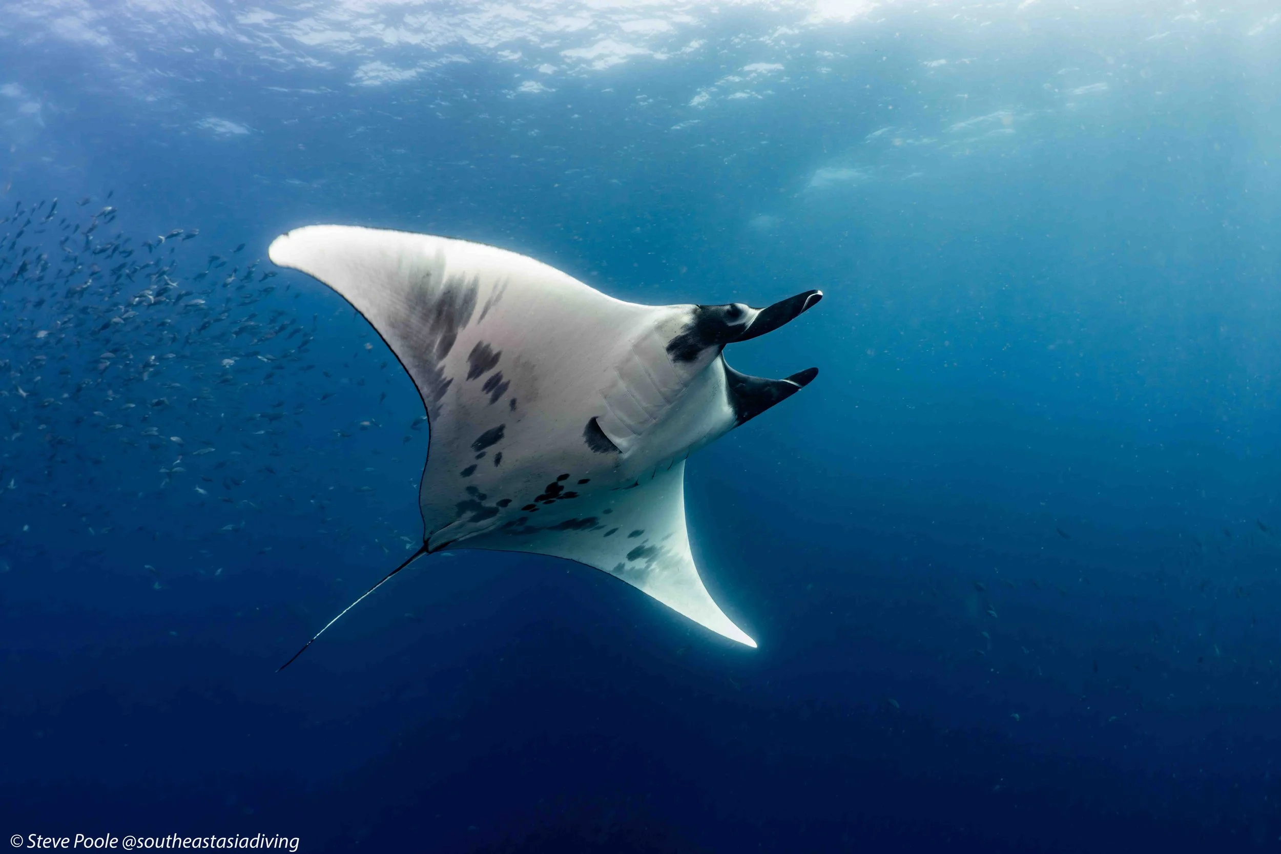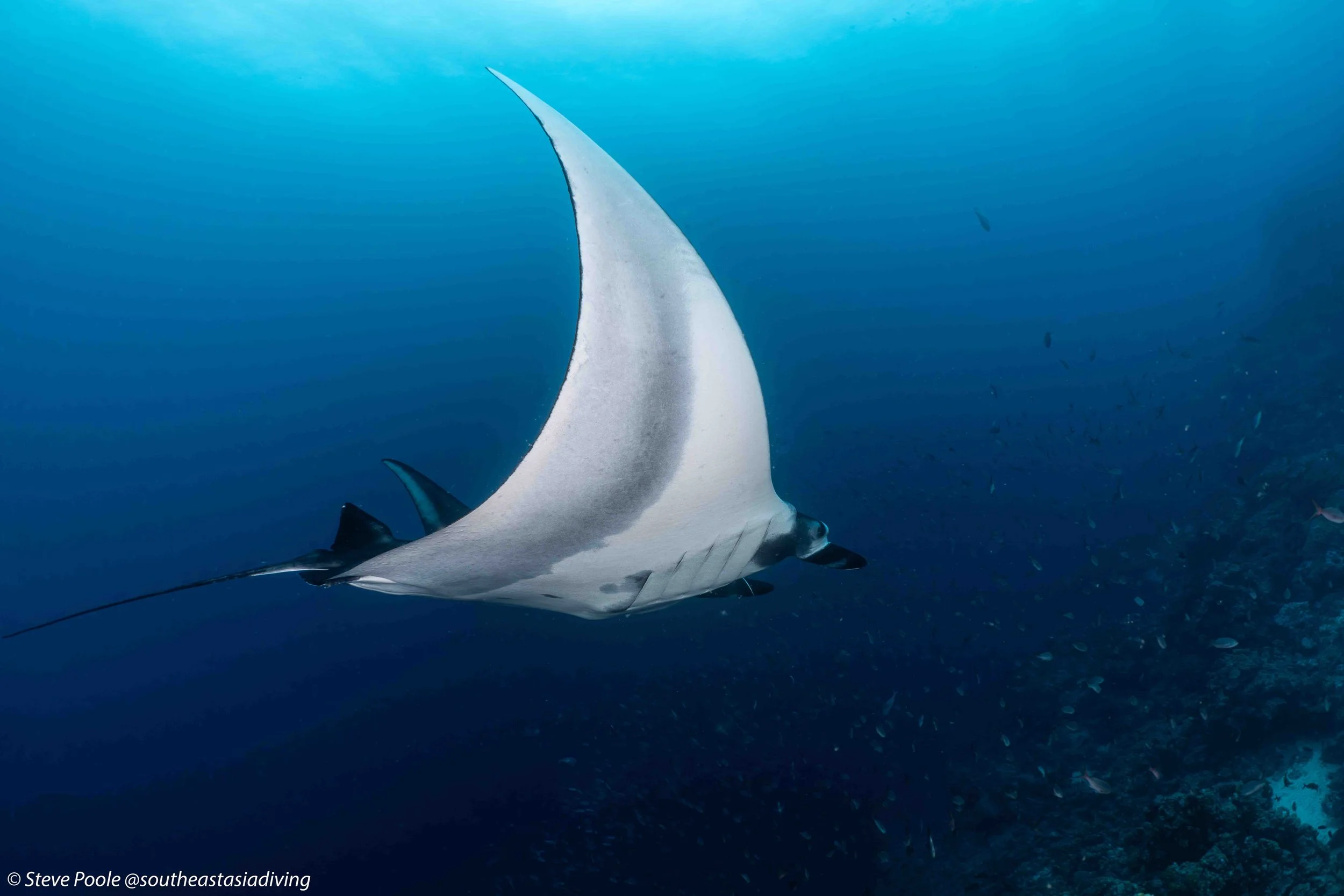 Divers in Southeast Asia may encounter two types of manta rays: reef mantas and oceanic mantas.