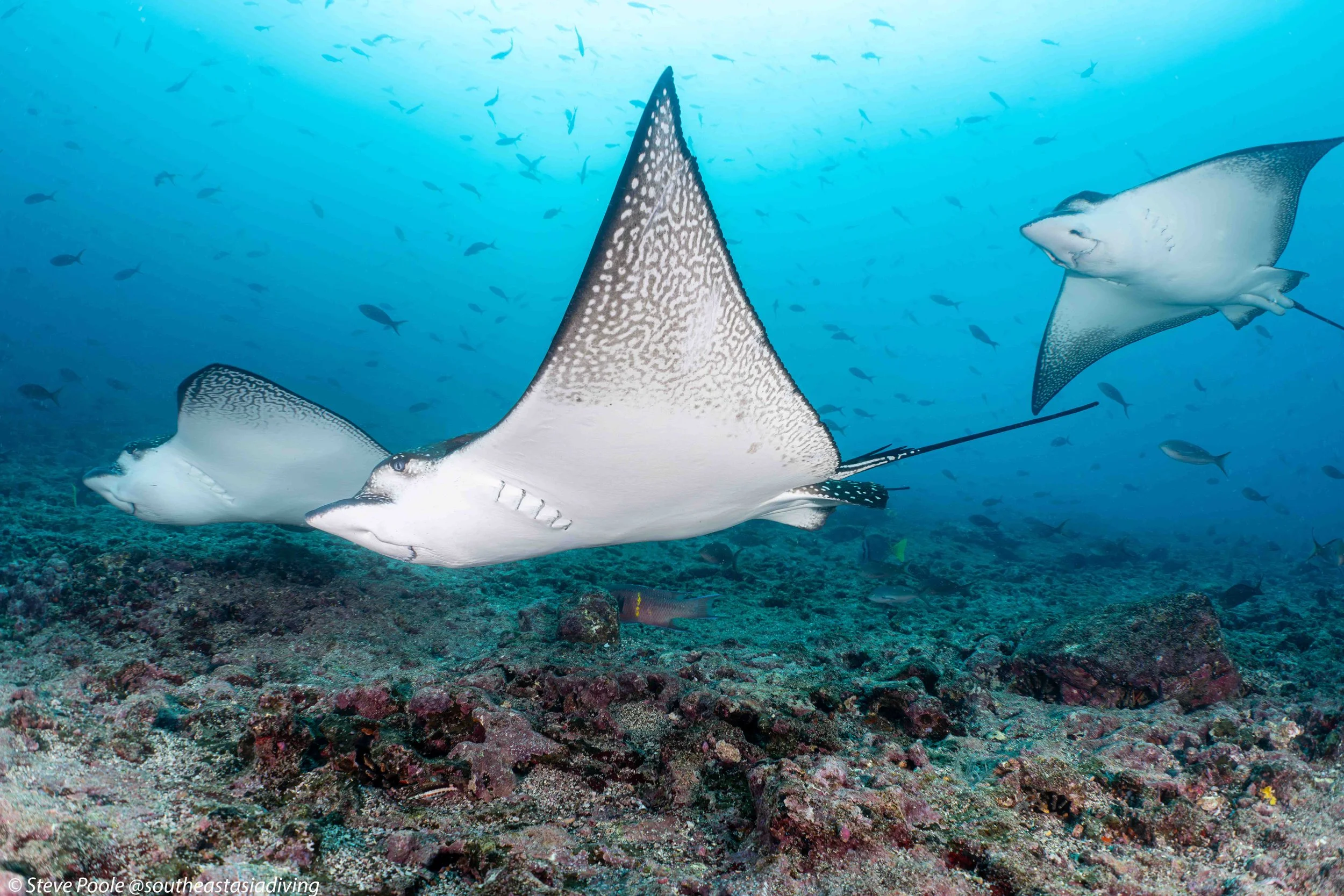Eagle rays don’t use cleaning stations in the same way mantas do and rarely tolerate close approach. As a result, many divers misidentify them or fail to recognise them at all. It’s common to hear them described simply as “a ray,” even though their behaviour is distinctly different from other species.