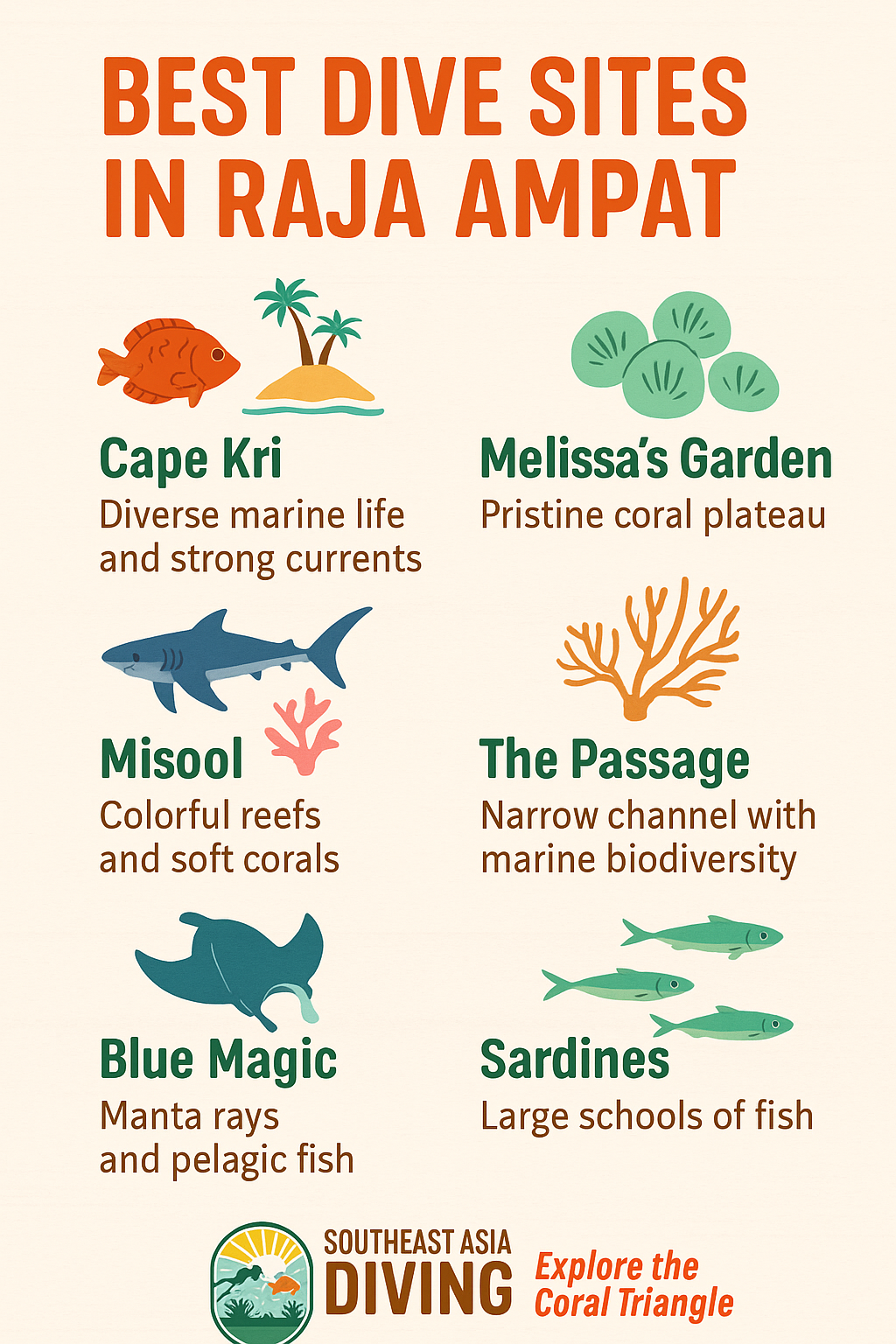✨ Each of these dive sites offers a unique experience — from manta highways and coral gardens to macro critter hunts and pelagic thrills. Together, they showcase the incredible variety that makes Raja Ampat one of the world’s premier dive destinations.