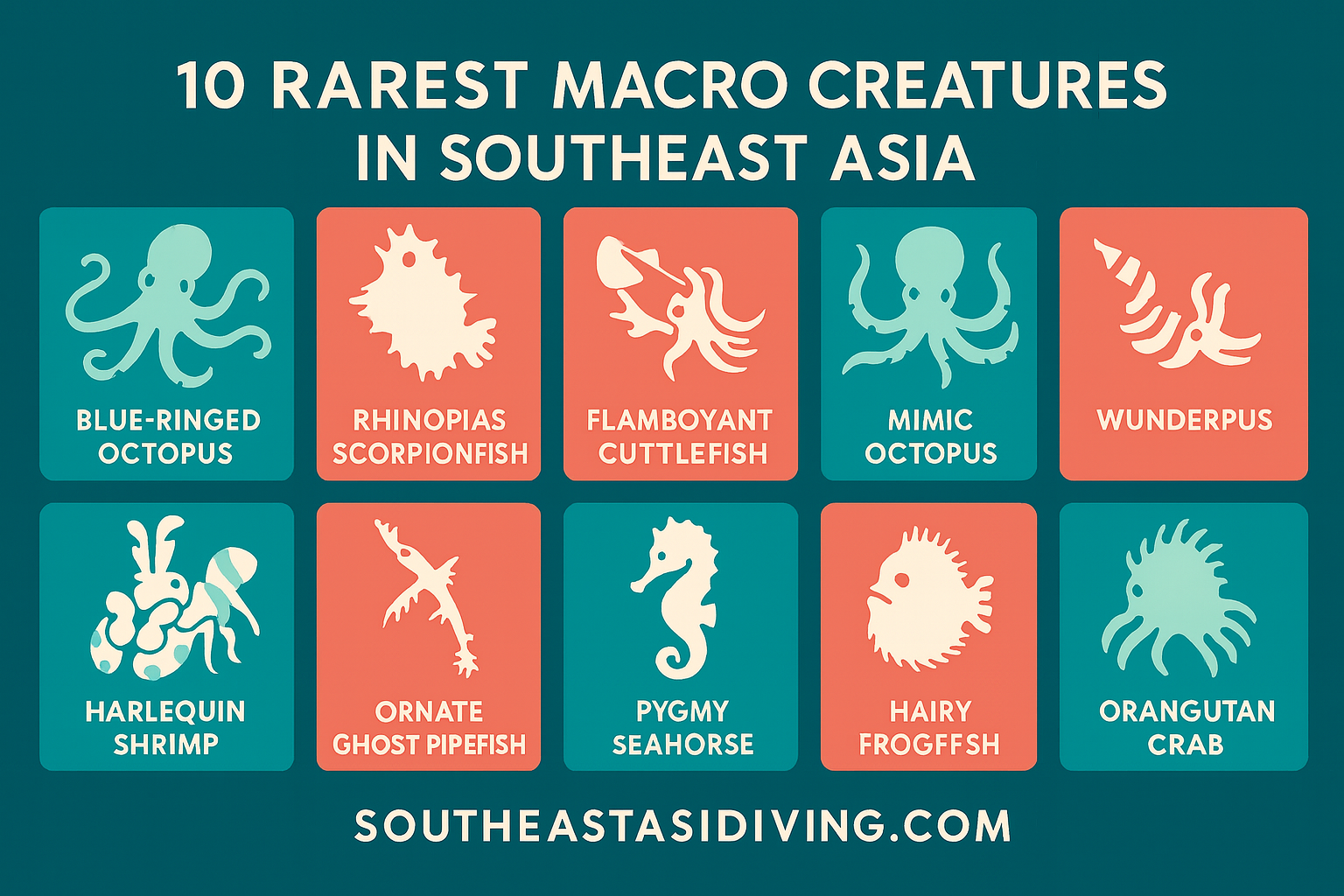 From the dazzling flamboyant cuttlefish to the elusive pygmy seahorse, here are ten of the most extraordinary macro critters you can find across Southeast Asia’s reefs — each one proof that the tiniest creatures often leave the biggest impression.