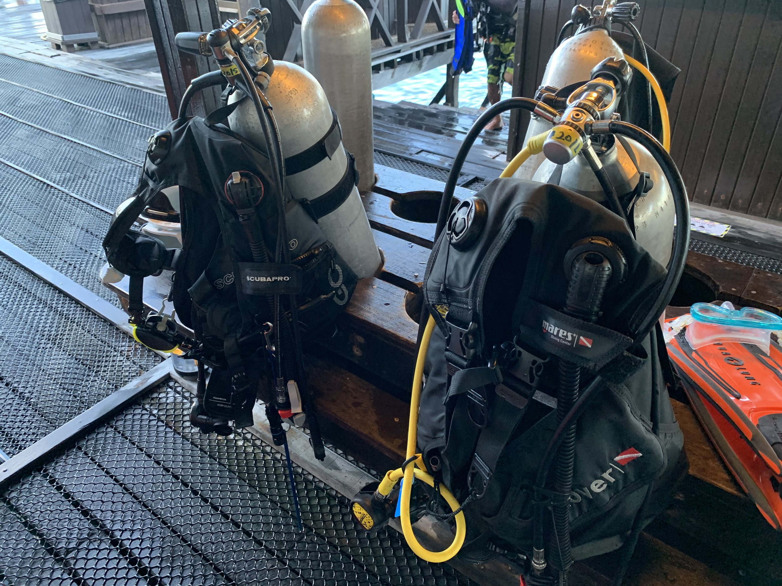 Scuba Gear prepared at the Dive Centre ready for a Shore Dive